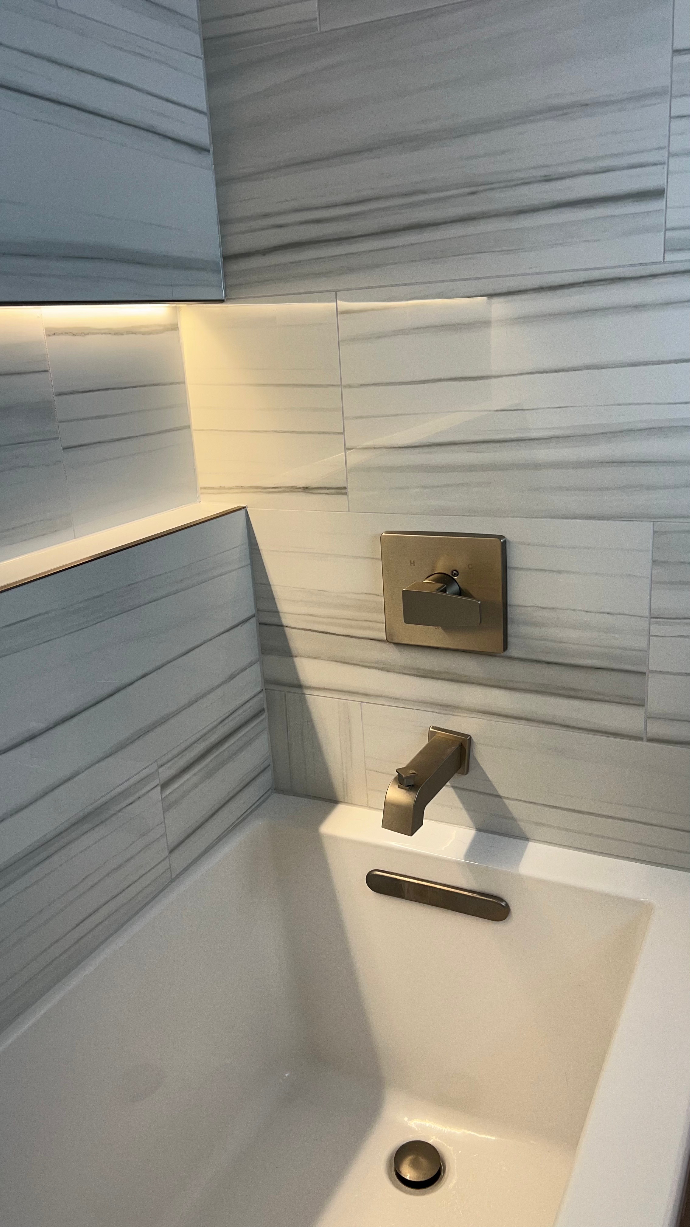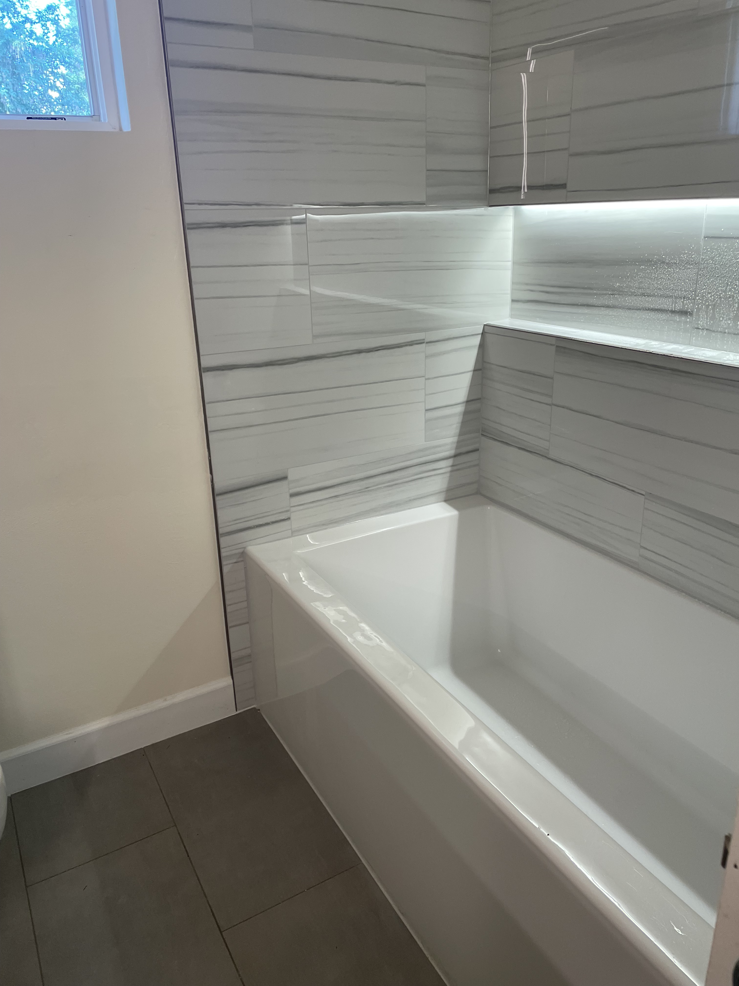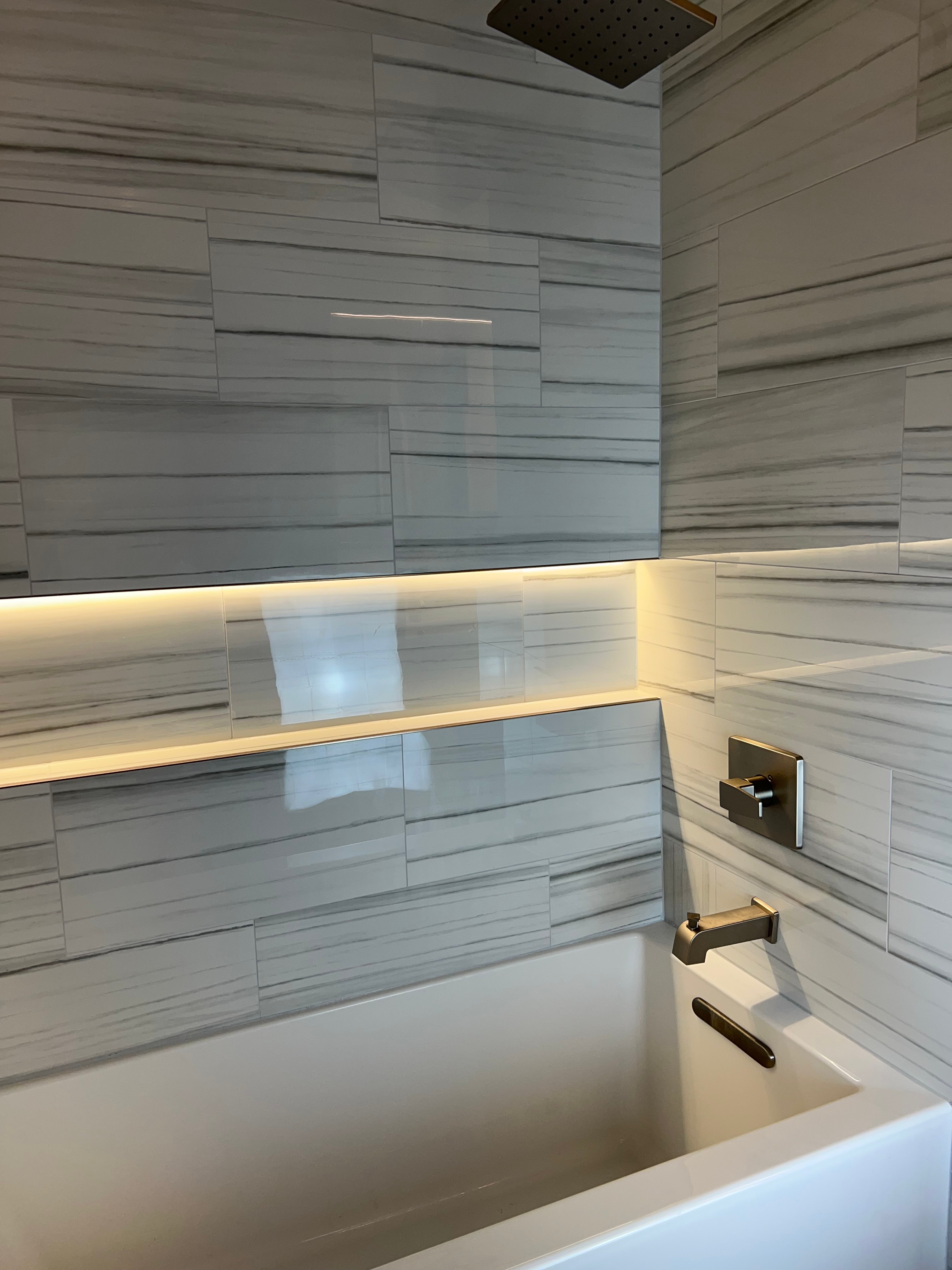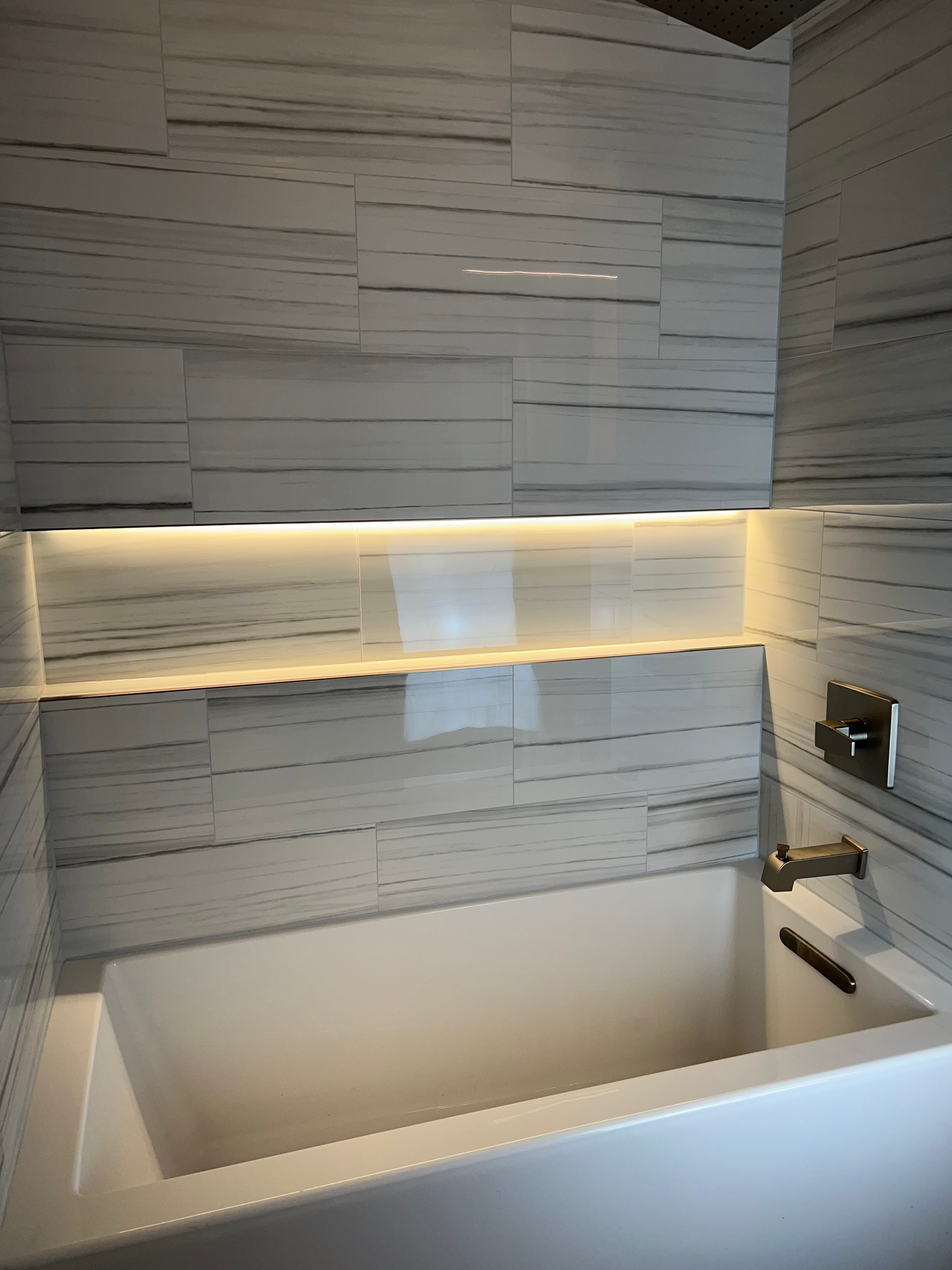 Alex and his team replaced my old plastic tub surround with gorgeous tile, and the difference is incredible. They also added a niche, which is perfect…