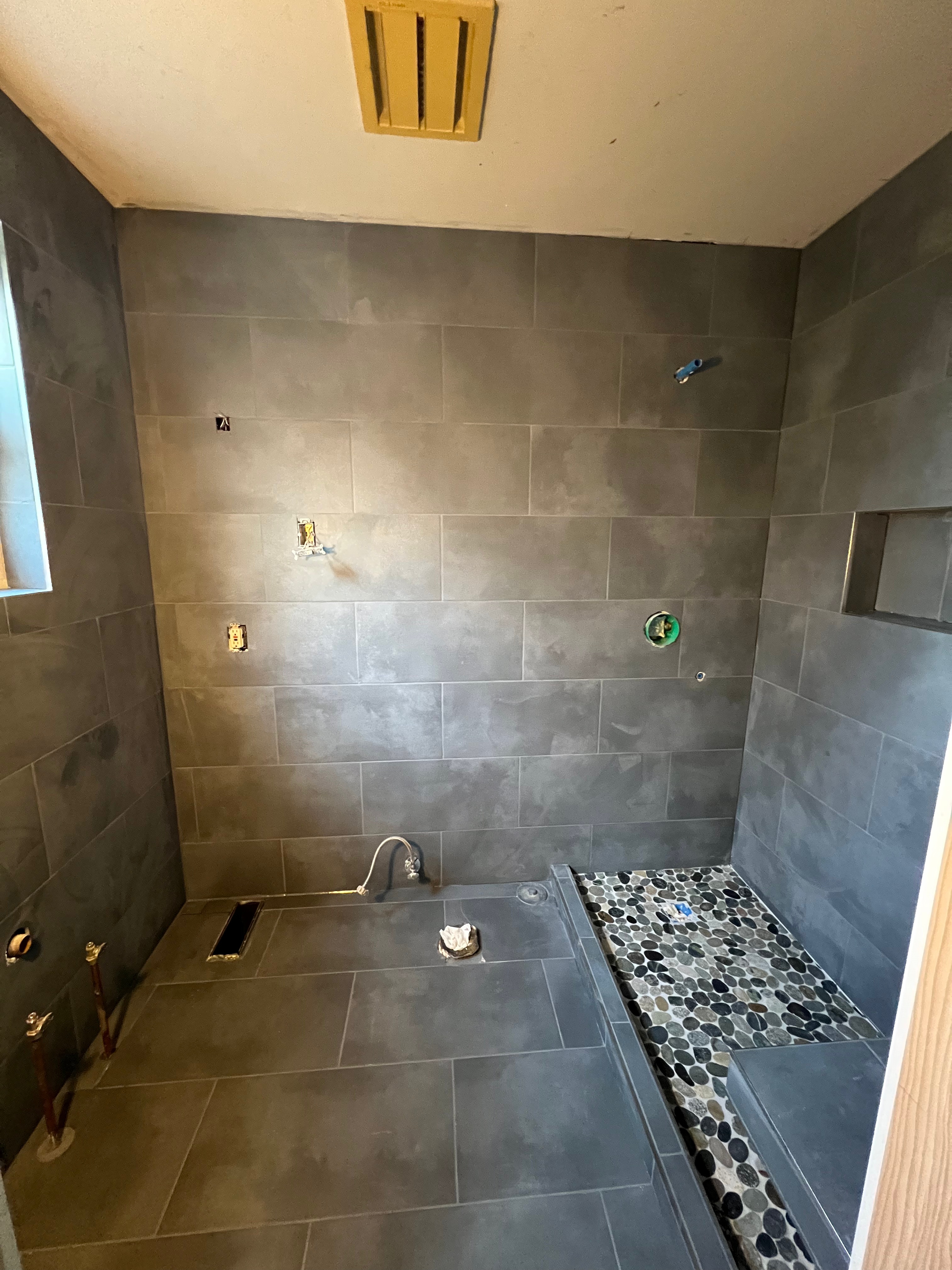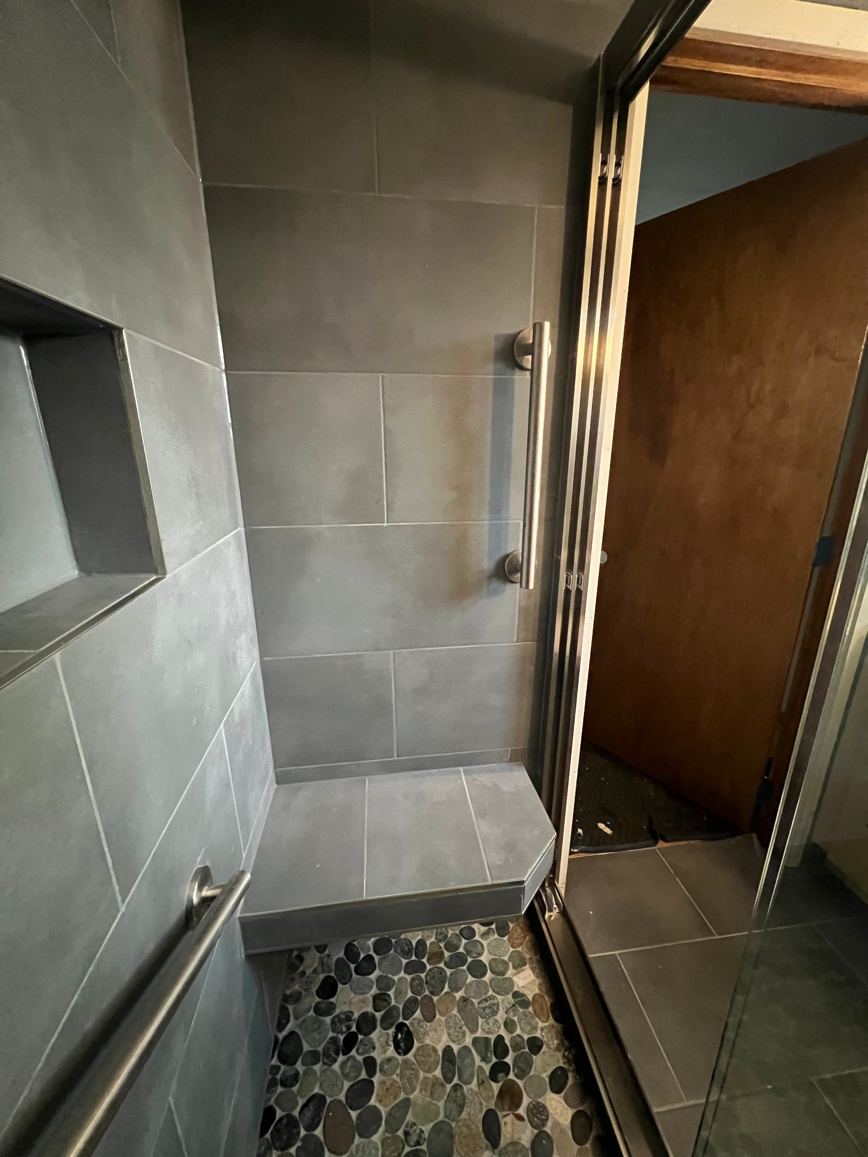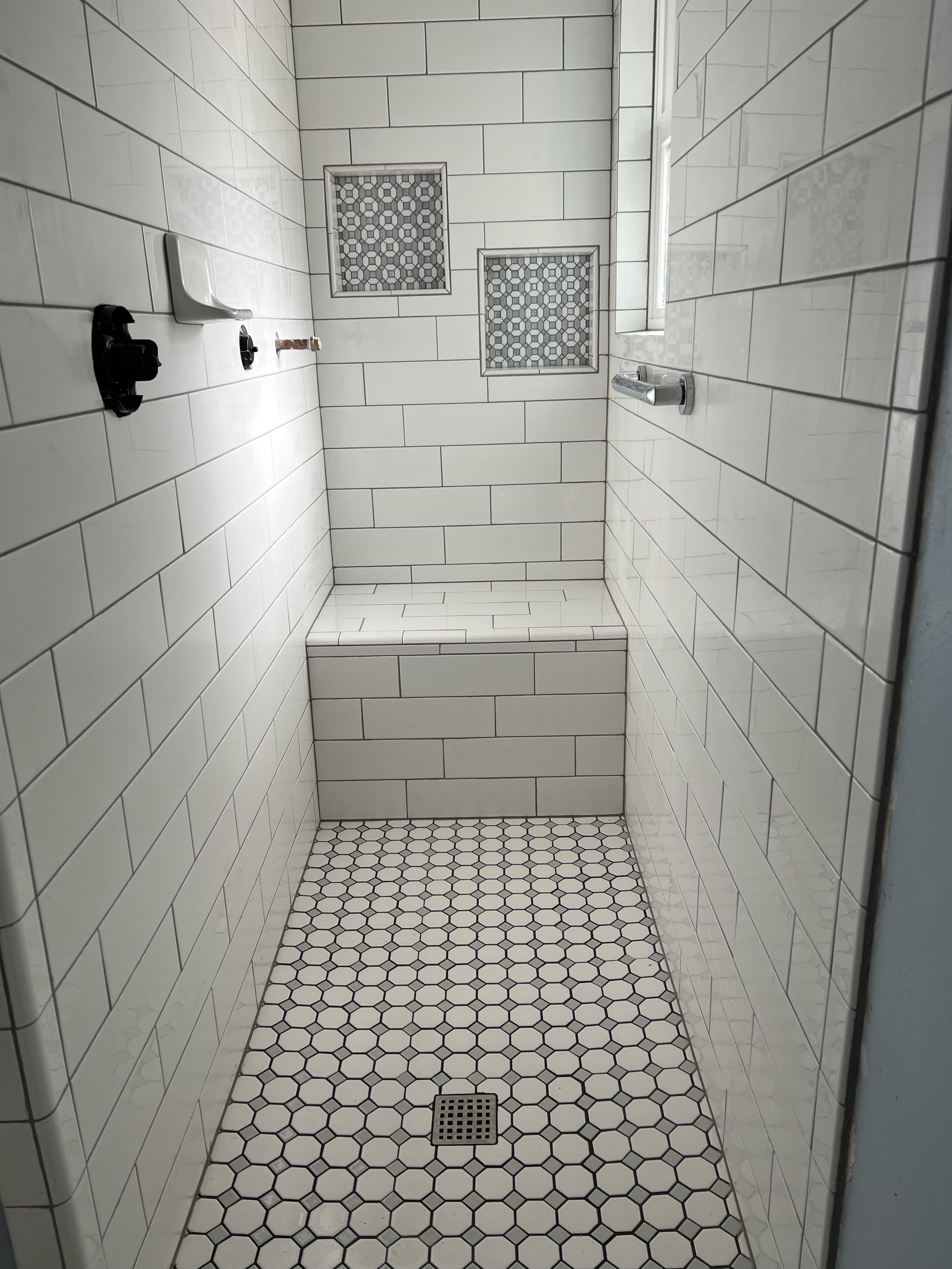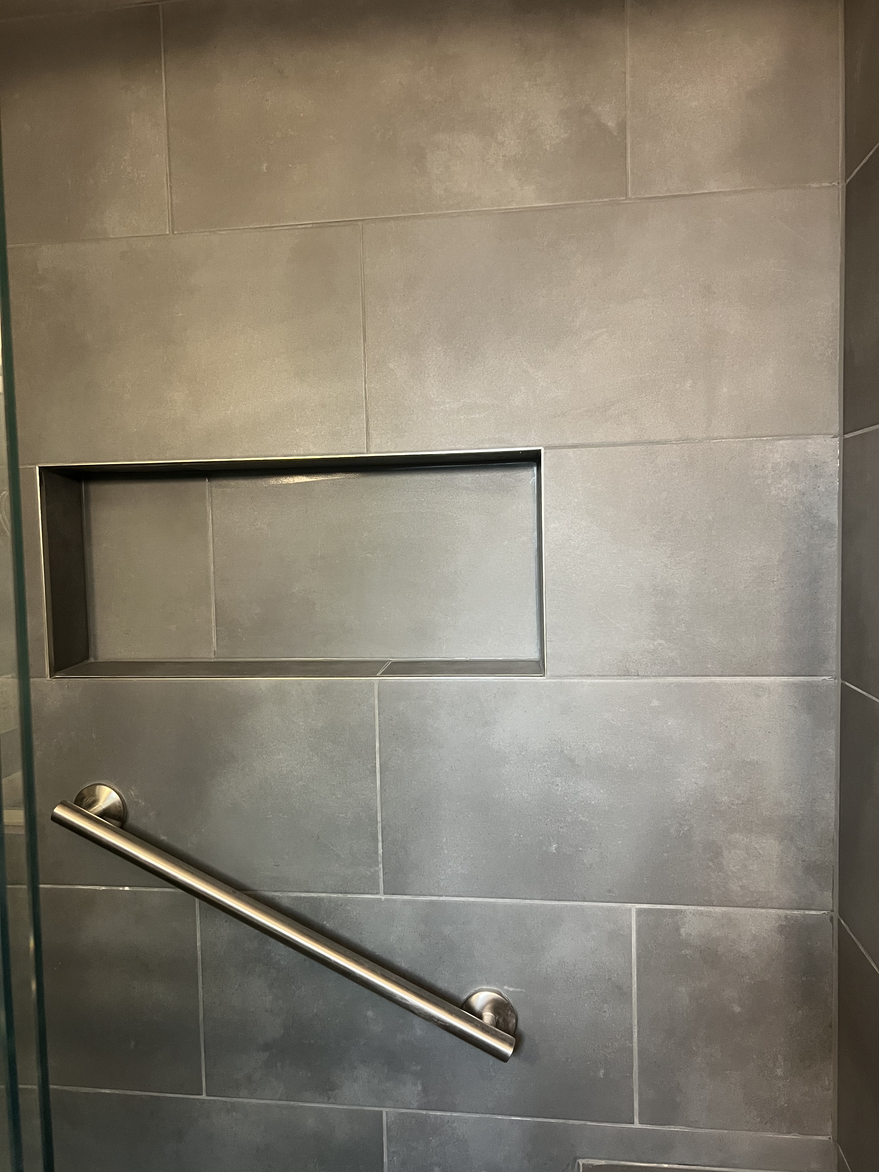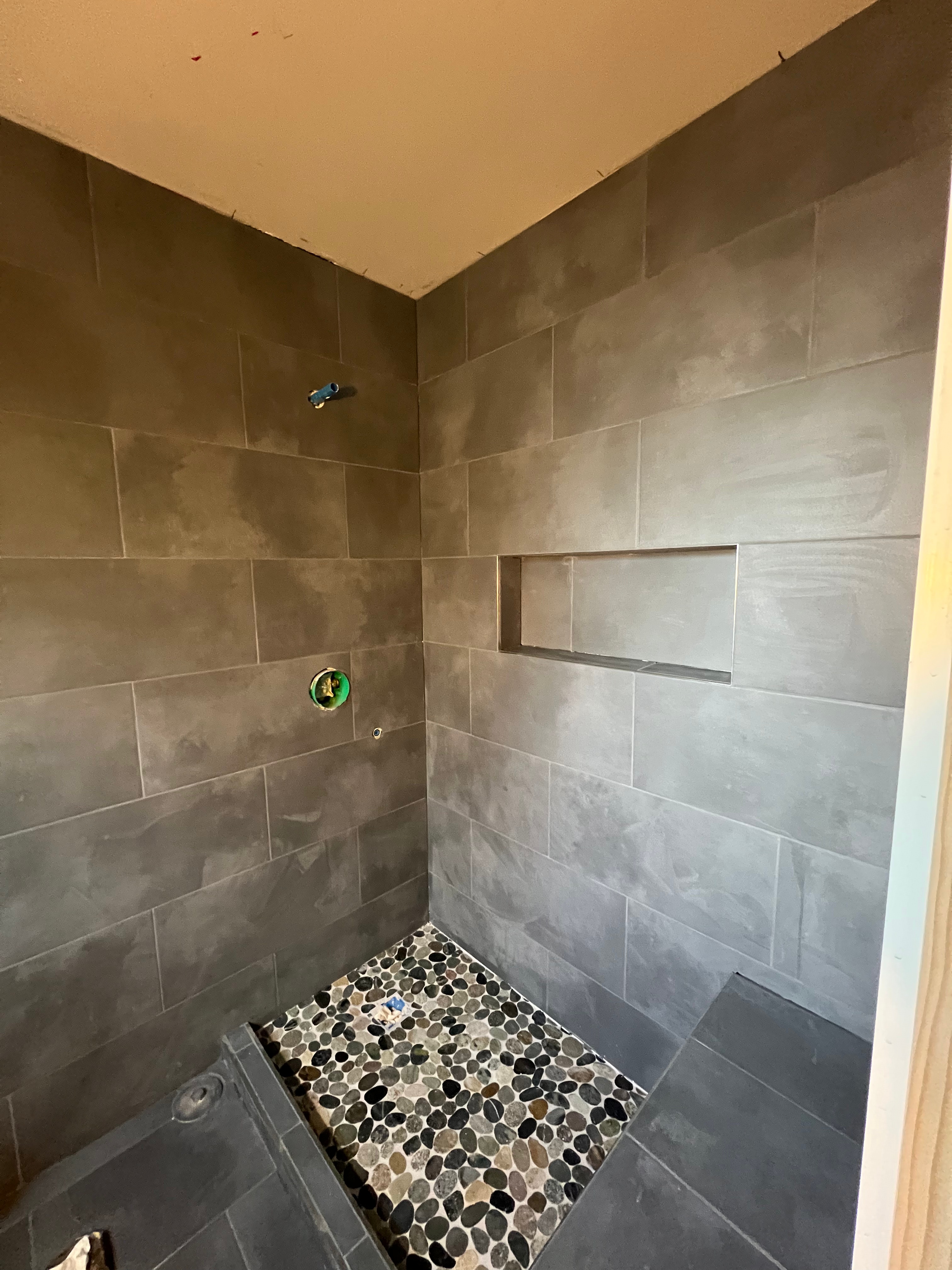 Wow! They built a shower for me and it turned out really nice! The niche turned out the way I wanted to keep the shampoos and everything else…