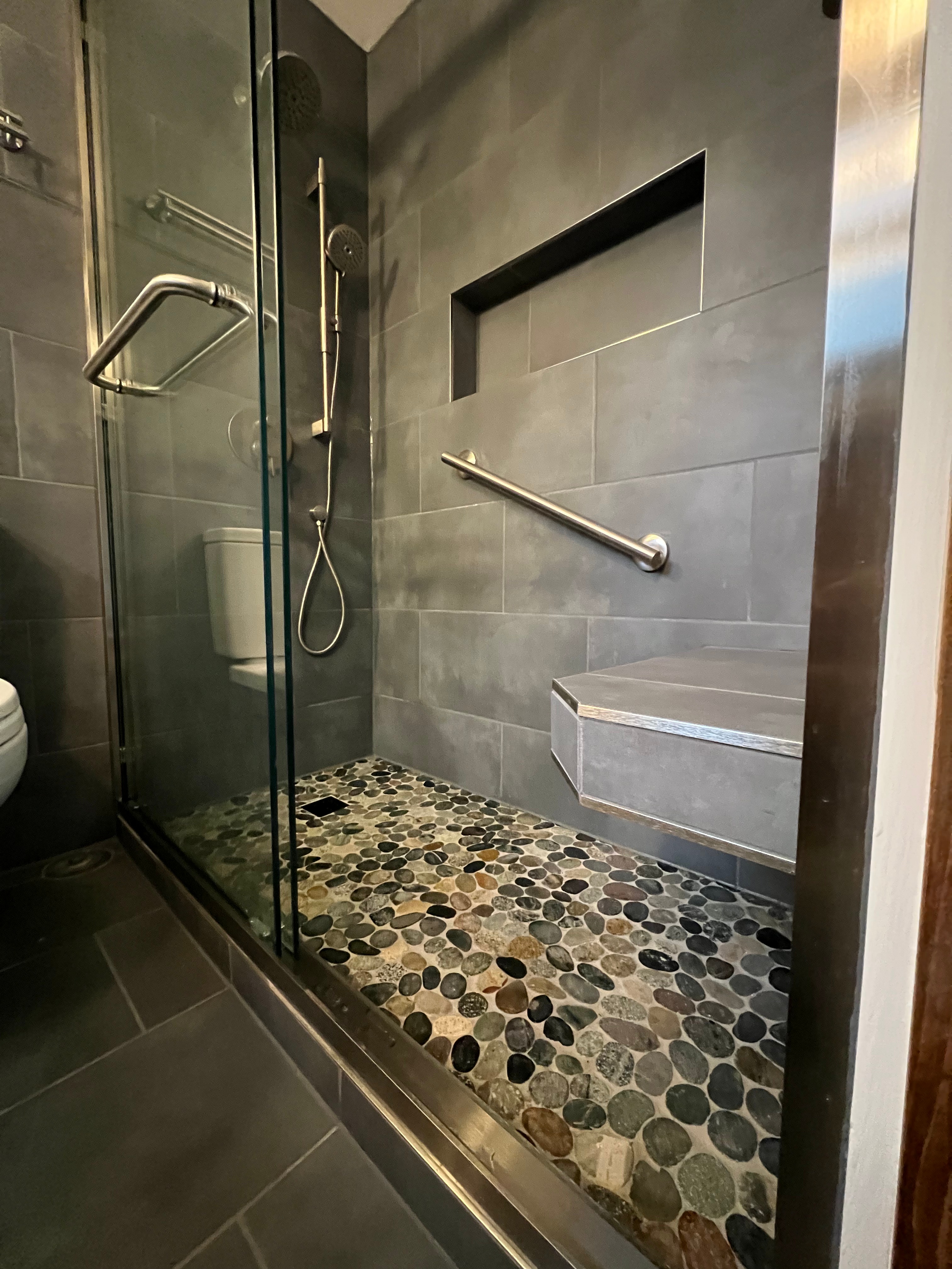 Seattle Bathroom Remodeling did an awesome job turning my old tub into a walk-in shower. I’m so happy with how it turned out! They also added grab bars…